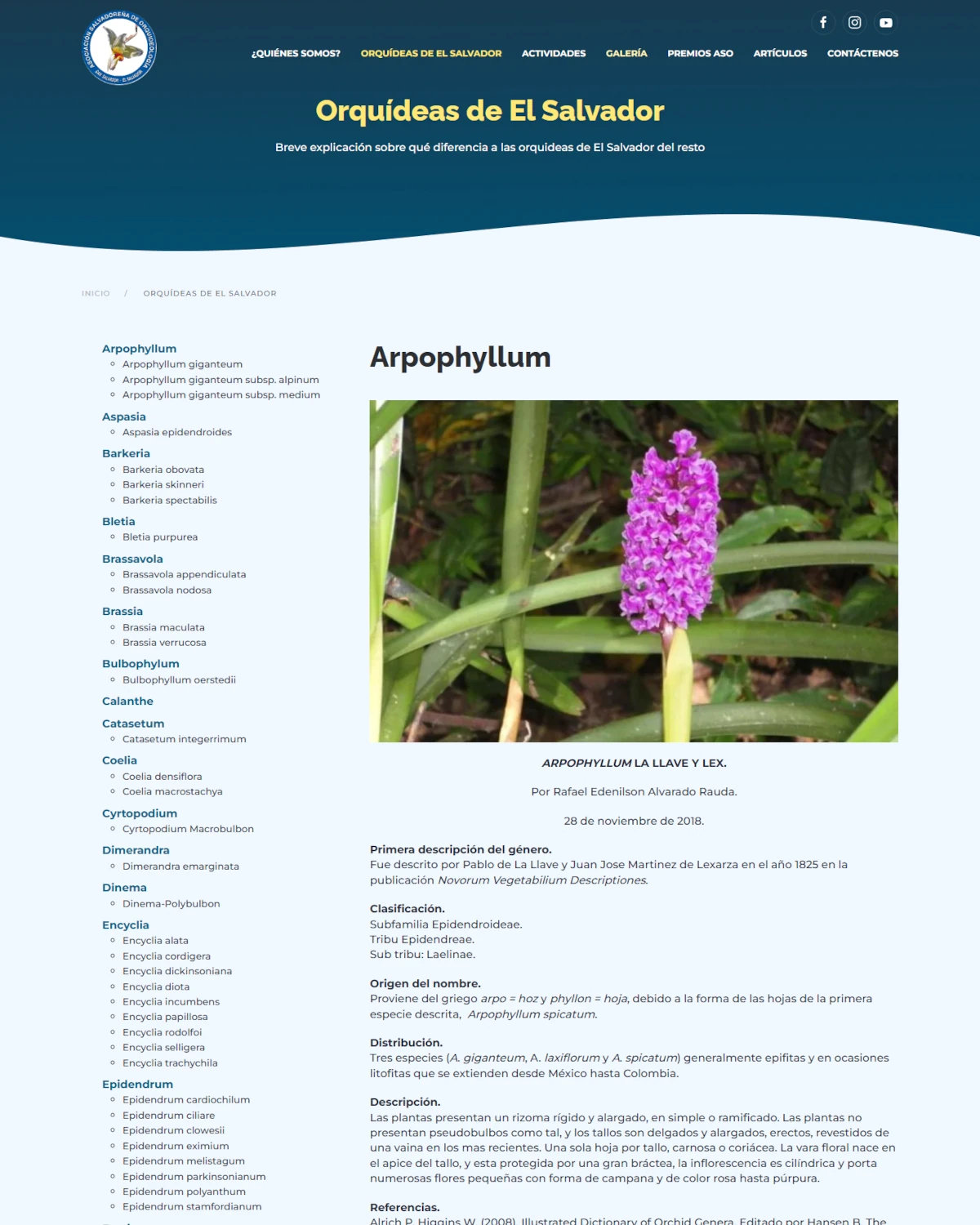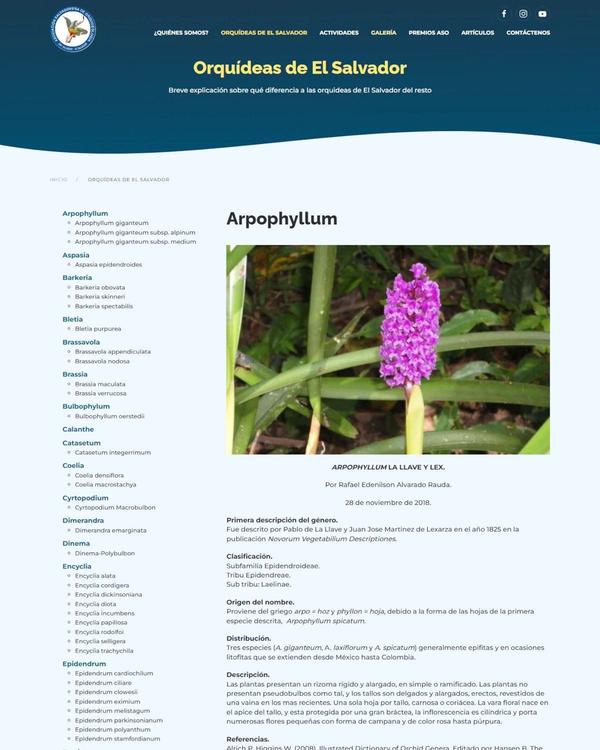 Sitio web Asociación Salvadoreña de Orquideología